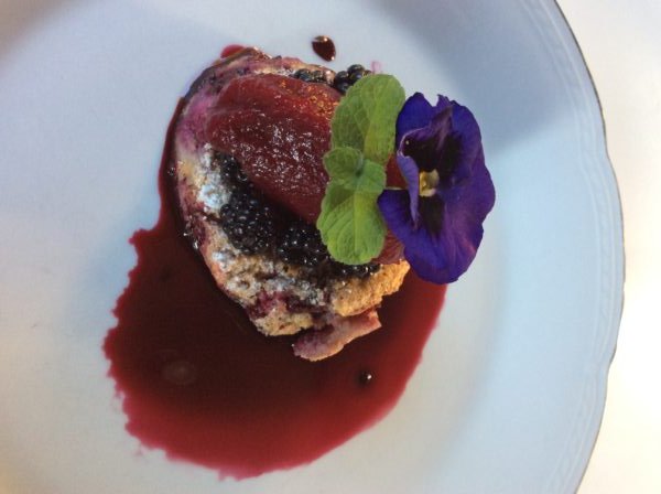 Clafoutis de murra con sorbet de manzana, remolacha y sauco, por Erre Oyarzún