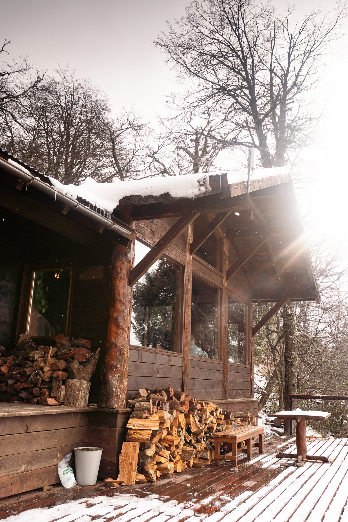 Cada copa fue acompañada por la propuesta gastronómica creada por la chef Mecha Solís, inspirada en sabores de montaña, elevando la experiencia sensorial al ritmo de la nieve que caía lentamente sobre la terraza del refugio.